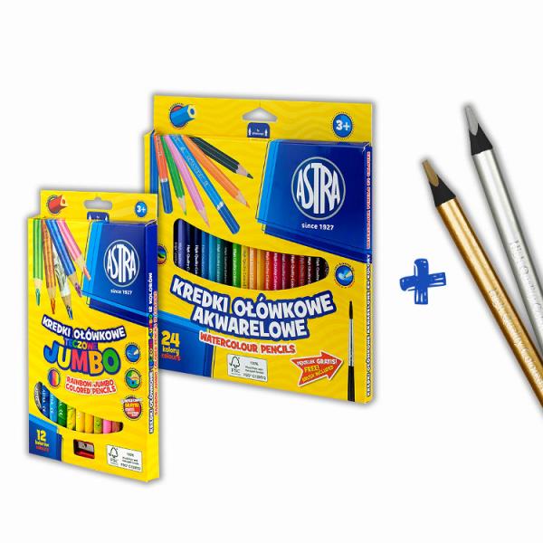 Zestaw kredek Astra prezentuje bogatą paletę barw. Komplet zawiera: