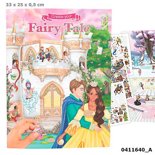 Zestaw z naklejkami Fairy Tale, 20 stron i 6 stron z naklejkami z motywami znanych bajek.