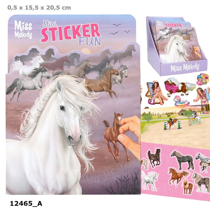 Zestaw z naklejkami Miss Melody Mini Sticker Fun, 12 stron z planszami do wyklejania, 7 stron z naklejkami.