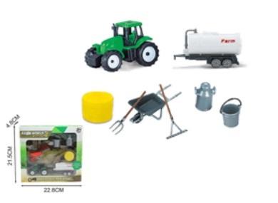 W zestawie traktor, przyczepa i akcesoria niezbędne na farmie