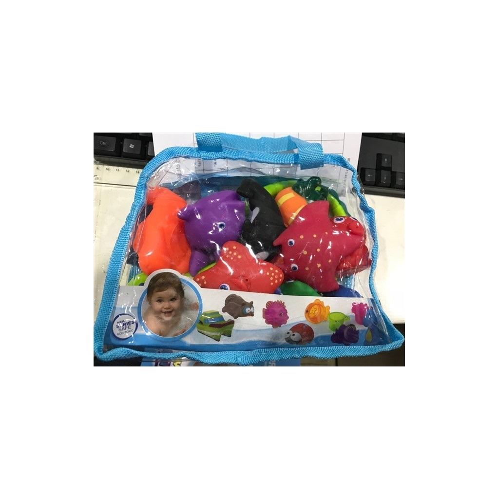 Zestaw różnych zabawek do kąpieli w praktycznym zamykanym opakowaniu