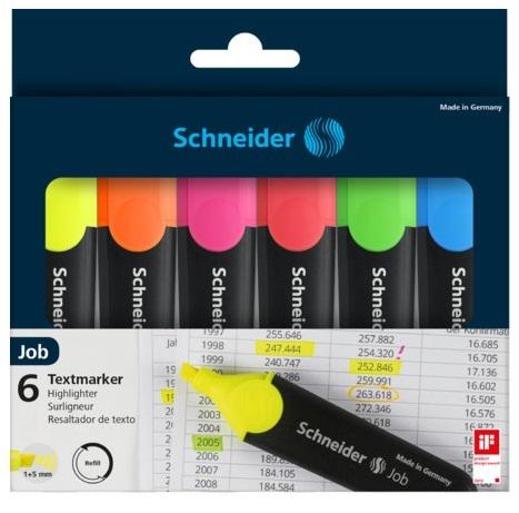 Opakowanie Zestaw zakreślaczy SCHNEIDER Job, 1-5 mm, 6 szt., miks kolorów