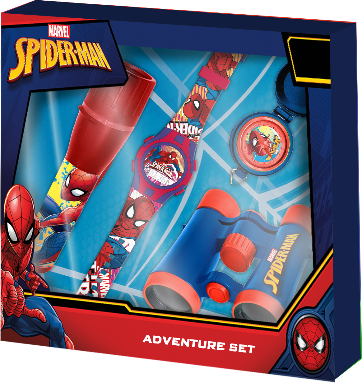 Wyjątkowy zestaw z wizerunkiem bohatera filmu ""Spiderman"", to idealny prezent zarówno dla fana tego superbohatera jak i małego podróżnika. Zestaw zawiera lornetkę, latarkę, kompas oraz zegarek.