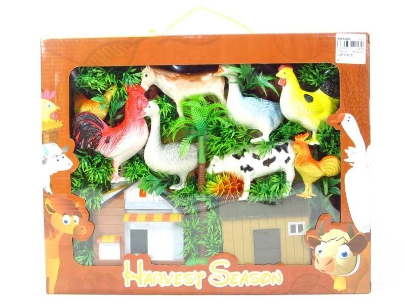 Zestaw zwierząt domowych 8 sztuk +2 domki +krzaczki