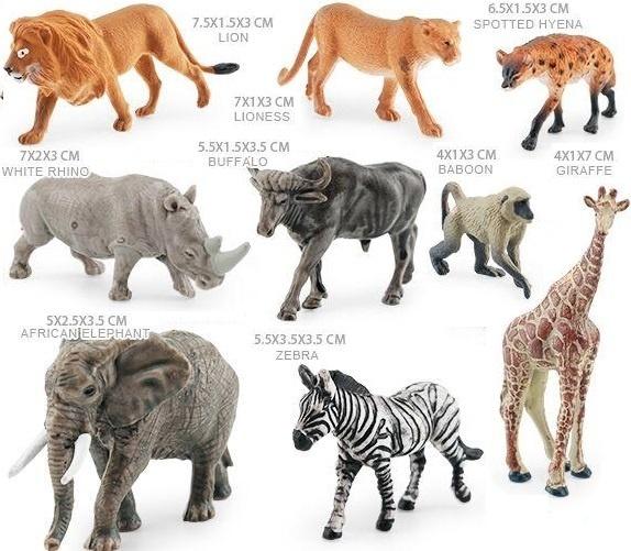 Przenieś się na afrykańską sawannę z naszym zestawem dziewięciu precyzyjnie wykonanych figurek zwierząt! Ten edukacyjny komplet to wspaniała okazja, aby poznać faunę Czarnego Lądu. W skład zestawu wchodzą: majestatyczny lew (7,5x1,5x3 cm) i lwica (7x1x3 cm), zwinna hiena cętkowana (6,5x1,5x3 cm), potężny biały nosorożec (7x2x3 cm), imponujący bawół (5,5x1,5x3,5 cm), ciekawski pawian (4x1x3 cm), wysoka żyrafa (4x1x7 cm), dumny słoń afrykański (5x2,5x3,5 cm) oraz charakterystyczna zebra (5,5x3,5x3,5 cm). Każda figurka została stworzona z dbałością o realistyczne odwzorowanie, co sprawia, że są one nie tylko idealne do zabawy, ale również doskonale sprawdzą się jako narzędzie do nauki i rozbudzania ciekawości świata przyrody. To doskonały prezent dla dzieci w każdym wieku, który zapewni godziny kreatywnej rozrywki i edukacji. Idealny do kolekcjonowania, tworzenia dioram czy po prostu do odgrywania scenek z życia dzikich zwierząt.