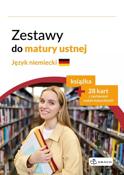 „Zestawy do matury ustnej. Język niemiecki” to publikacja, która ułatwi nauczycielowi próbne egzaminowanie uczniów ściśle według wymagań maturalnych. Uczniowi pozwala zapoznać się z przebiegiem egzaminu oraz przećwiczyć wypowiedź ustną na każdy możliwy na maturze temat. Teczka zawiera: – 28 kart z zestawami zadań maturalnych zgodnych z aktualnymi wymogami CKE, które: poruszają wszystkie zagadnienia leksykalne zawarte w podstawie programowej, pozwalają na przygotowanie się do egzaminu ustnego – samodzielnie lub z nauczycielem, nauczyciel może wykorzystać na zajęciach w ramach przygotowań do matury ustnej, pomagają uczniowi samodzielnie ćwiczyć swoją wypowiedź na podstawie losowo wybranych zadań – książkę zawierającą: charakterystykę egzaminu, zasady i kryteria oceniania ucznia, zalecaną w Informatorze maturalnym CKE rozmowę wstępną z przykładowymi pytaniami na każdy z tematów leksykalnych przewidzianych w podstawie programowej, przykładową kartę indywidualnej oceny części ustnej egzaminu maturalnego, 28 zestawów maturalnych wraz z pytaniami, które należy zadać uczniowi wg zaleceń CKE.