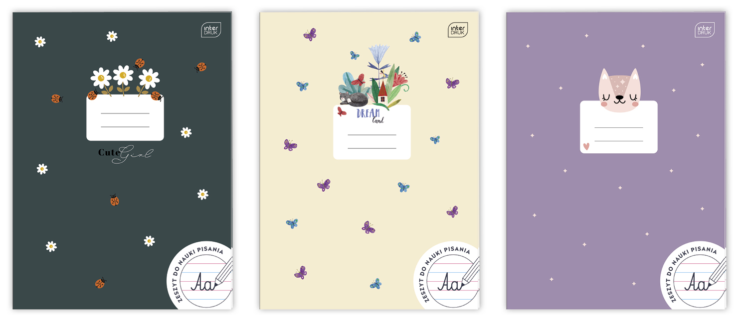 Opakowanie Zeszyt A4 32 k. 3-linie kolorowe UV Girls, Interdruk