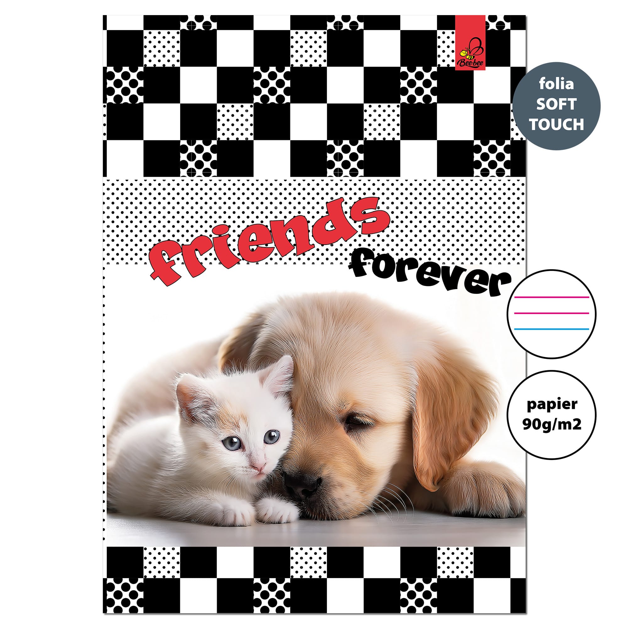 Zeszyt A4 32 kartki w 3 linie kolor 90g Kot i pies