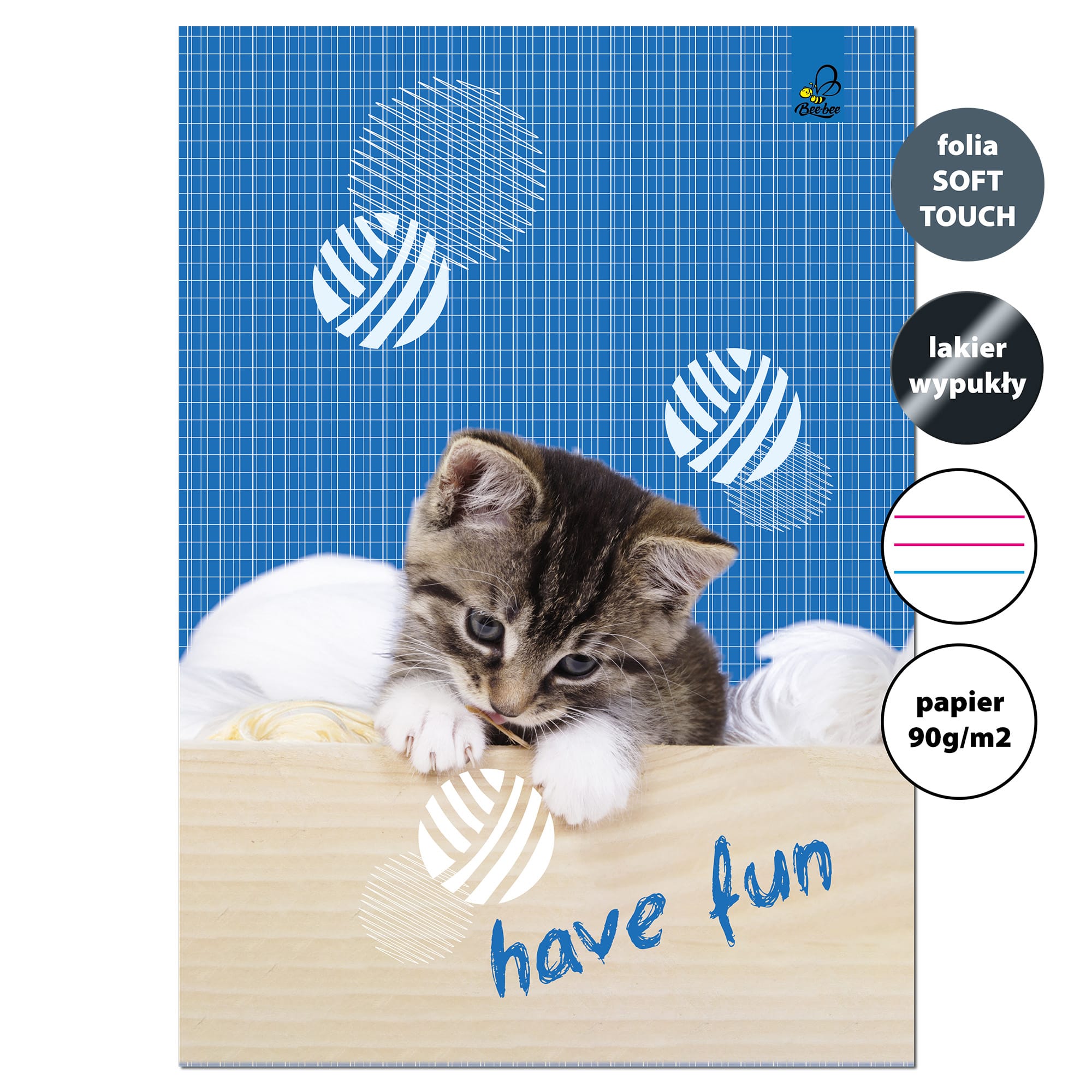 Zeszyt A4 32 kartki w 3 linie kolor 90g Kot i piłki
