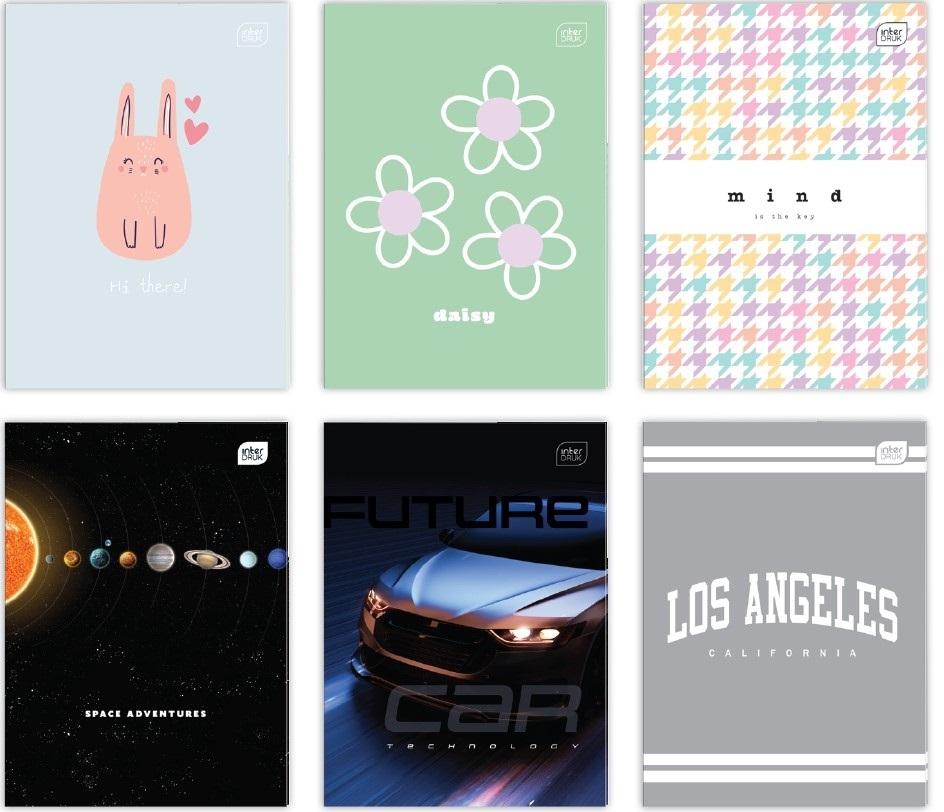 Zeszyt A4 kratka, 36 kartek, mix wzorów. 5 sztuk w opakowaniu zbiorczym.