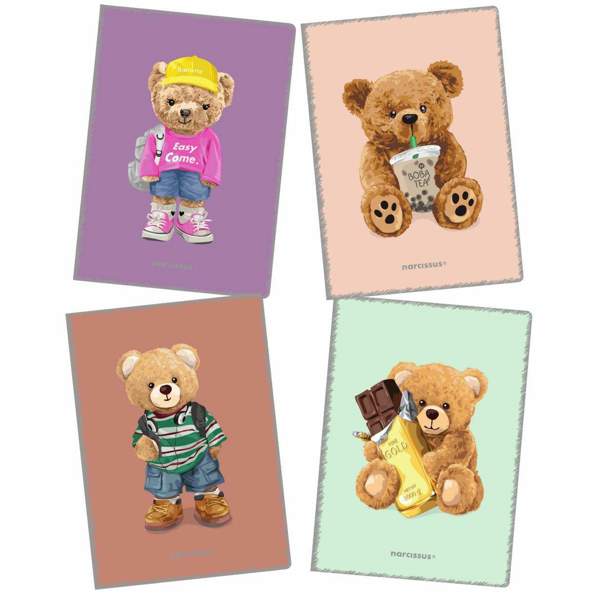 NARCISSUS zeszyt TEDDIES A4 w kratkę w okładce z polipropylenu, 60 kartek TEDDIES to seria zeszytów szkolnych z okładkami przedstawiającymi słodkie misie. Idealna propozycja nie tylko dla wielbicieli pluszaków. Przyciągające wzrok grafiki sprawiają, że zeszyty podobają się wszystkim, a korzystanie z nich podczas nauki w szkole to tylko jedna z wielu możliwości. Rób notatki, rysuj, projektuj, prowadź dziennik, ciesz się swoją pomysłowością, bo nauka i praca z serią TEDDIES to doskonała zabawa! Okładka z polipropylenu (PP) charakteryzuje się dużą elastycznością i odpornością na zabrudzenia. Jest praktyczna, trwała i sprawia, że zeszyt nie wymaga dodatkowej obwoluty. Specyfikacja: • format A4 • zadruk w kratkę z marginesami • 60 kartek • gramatura 80 g/m2