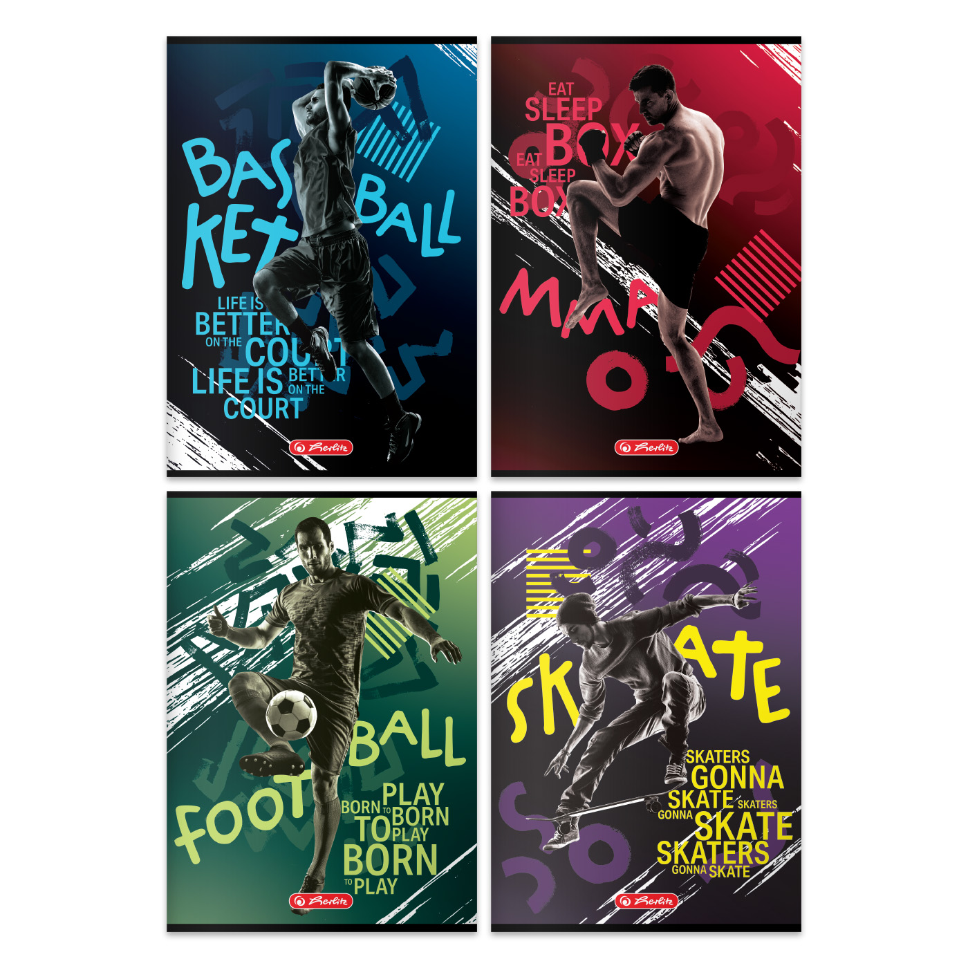 Kolekcja zeszytów dla wszystkich którzy uwielbiają sport, okładki zeszytów wykonane z papieru o gramaturze 200g.
