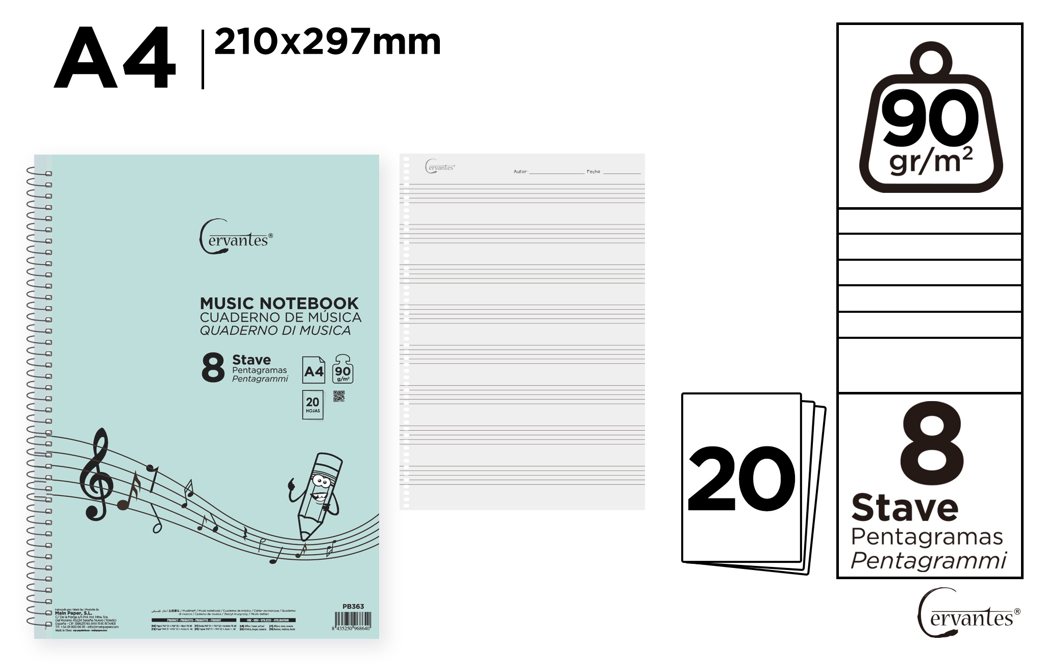 Opakowanie Zeszyt A4 Cervatnes do nut pięciolinia