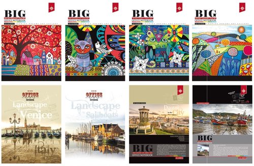 Zeszyt A4 32 stron kratka BR (opakowanie 16 sztuk). Opakowanie zawiera 8 wzorów po 2 sztuki ze wzoru.