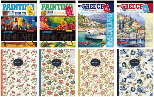 Zeszyt A4 48 stron linia BR (opakowanie 16 sztuk). Opakowanie zawiera 8 wzorów po 2 sztuki ze wzoru.