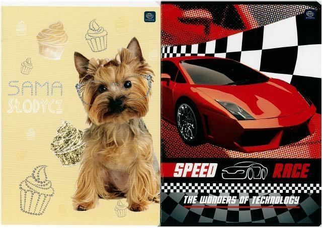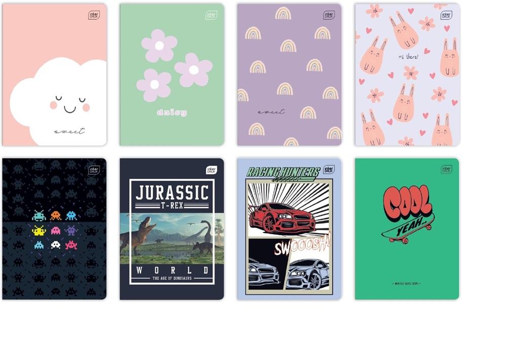 Zeszyt A5 kolorowa linia, 16 kartek, mix wzorów. 20 sztuk w opakowaniu zbiorczym. Producent Interdruk.
