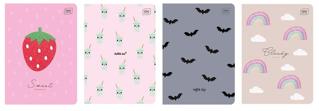Format: A5. Liczba kartek: 16. Zadruk w kolorową trzylinię. Zaokrąglone rogi. Efektowna i przyciągająca wzrok, kolorowa okładka, wybiórczo pokryta błyszczącym brokatem.