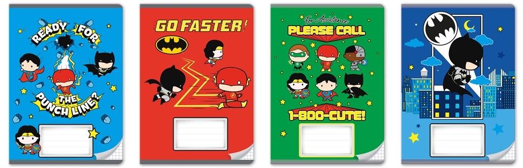 Zeszyt A5, posiada 16 kartek o gramaturze 70 g/m2 w kratkę. Charakteryzuje się estetycznym, lakierowanym wykończeniem i okładką z serii Batman. Na zewnętrznej stronie okładki: imiennik - miejsce na wpisanie imienia, nazwiska, klasy.