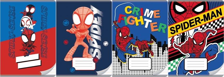 Zeszyt A5, posiada 16 kartek o gramaturze 70 g/m2 w 3 kolorowe linie. Charakteryzuje się estetycznym, lakierowanym wykończeniem i okładką z serii Spider Man. Na zewnętrznej stronie okładki: imiennik - miejsce na wpisanie imienia, nazwiska, klasy.