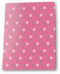 Zeszyt 16 kartkowy, w wąskie kolorowe linie z marginesem, zadrukowana wewnętrzna okładka, laminowana.