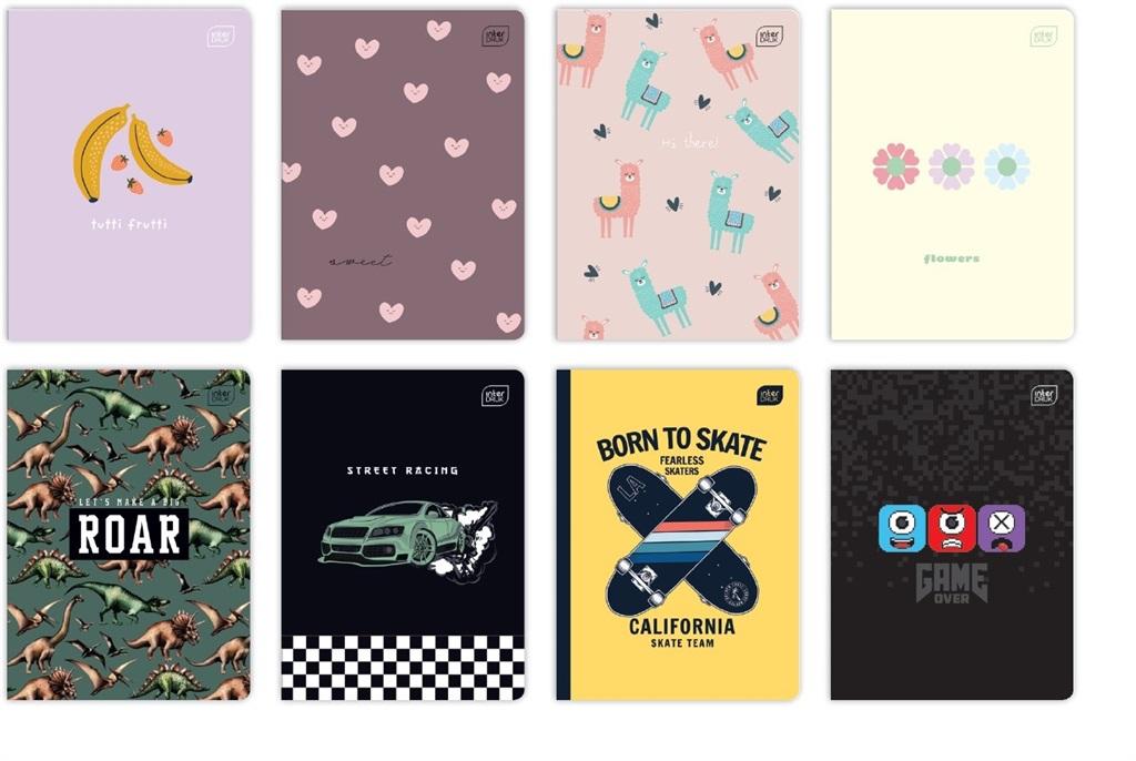 Zeszyt A5 linia, 16 kartek, mix wzorów. 20 sztuk w opakowaniu zbiorczym.