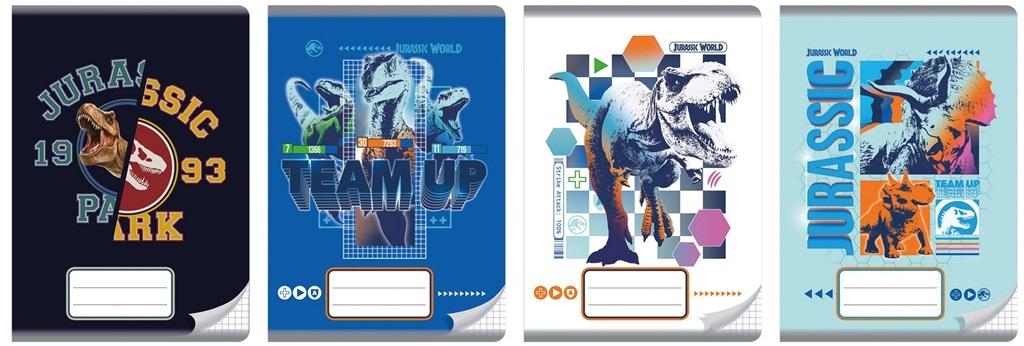 Zeszyt A5, posiada 32 kartki o gramaturze 70 g/m2 w kratkę. Charakteryzuje się estetycznym, lakierowanym wykończeniem i modną grafiką na okładce z serii Jurassic Park. Na zewnętrznej stronie okładki: imiennik - miejsce na wpisanie imienia, nazwiska, klasy.