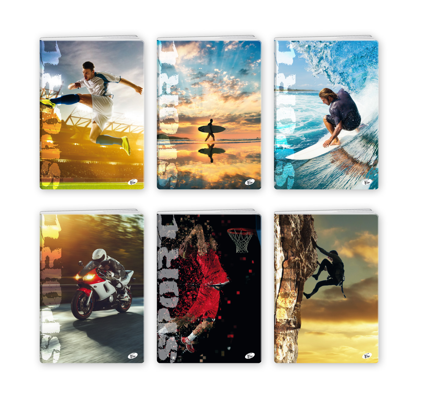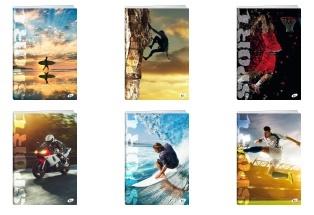 Zeszyty z kolekcji SPORT to dynamiczne ujęcia, podkreślone przez selektywnie lakierowane elementy.