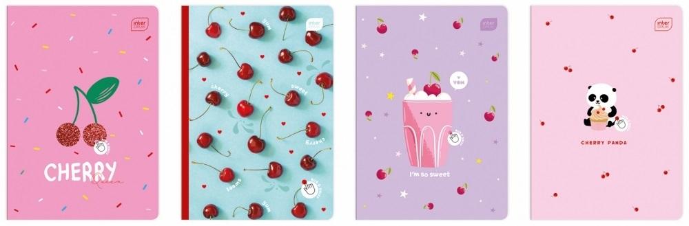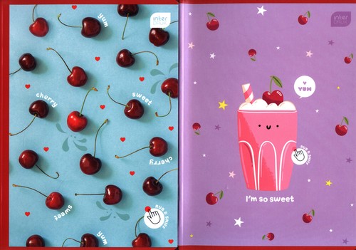 Zeszyt A5 w kratkę 32 kartki zapachowy Cherry Liniatura jasnoniebieska, marginesy czerwone. Opakowanie 10 sztuk, mix wzorów