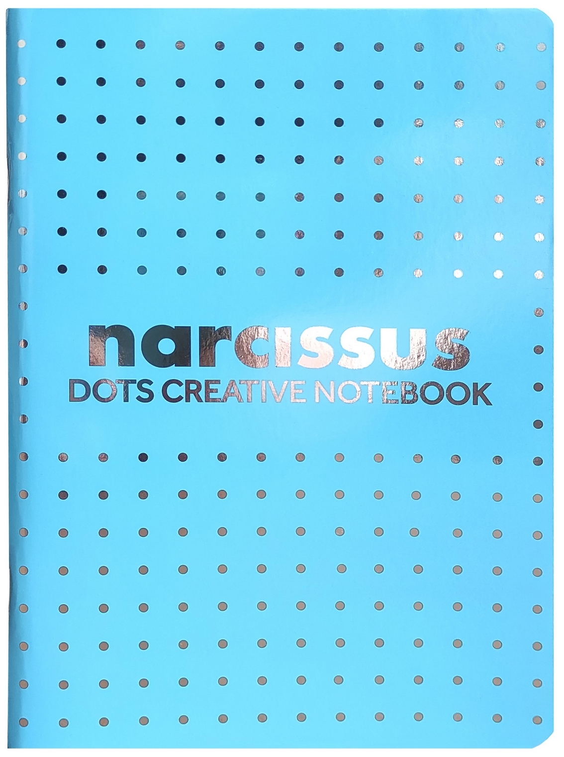 Zeszyt A5 marki Narcissus. Kartki zadrukowane w nowoczesne kropki - idealne do bullet journal, tworzenia map myśli, plannerów. Posiada 56 kartek, papier o podwyższonej gramaturze 80 gsm - dzięki temu nie ma efektu przebijania. Specyfikacja: - format A5 - 56 kartek - gramatura 80 - metalizowana błękitna okładka drip-off efekt. Cena dotyczy 6 zeszytów.