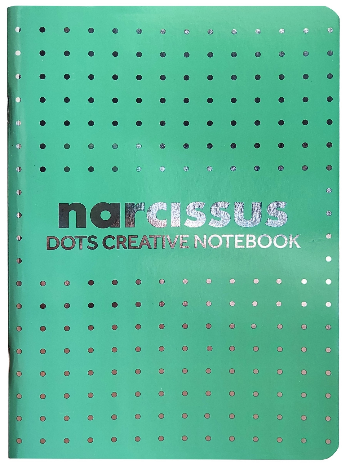 Zeszyt A5 marki Narcissus. Kartki zadrukowane w nowoczesne kropki - idealne do bullet journal, tworzenia map myśli, plannerów. Posiada 56 kartek, papier o podwyższonej gramaturze 80 gsm - dzięki temu nie ma efektu przebijania. Specyfikacja: - format A5 - 56 kartek - gramatura 80 - metalizowana zielona okładka drip-off efekt. Cena dotyczy 6 zeszytów.