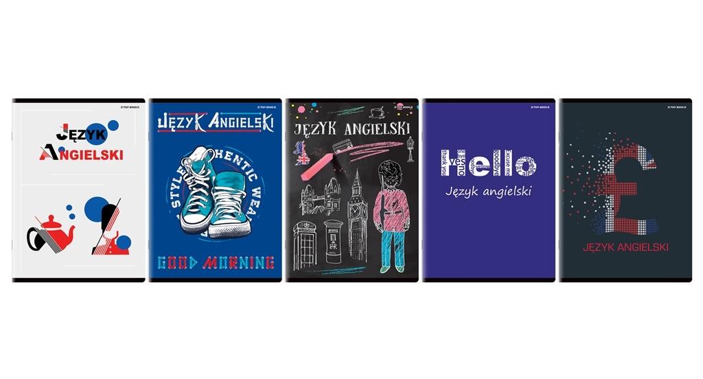 Zeszyt przedmiotowy do języka angielskiego z miękką okładką, w formacie A5, 60 kartkowy w kratkę z marginesem o gramaturze papieru 70g. Opakowanie zbiorcze.