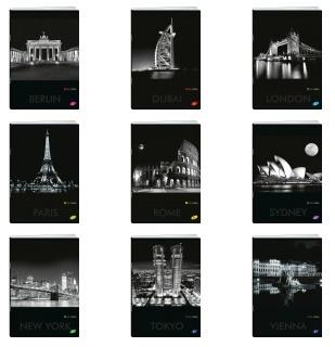 Zeszyty z kolekcji CITIES BY NIGHT charakteryzują się szlachetnymi, matowymi okładkami z nocnymi fotografiami miast.