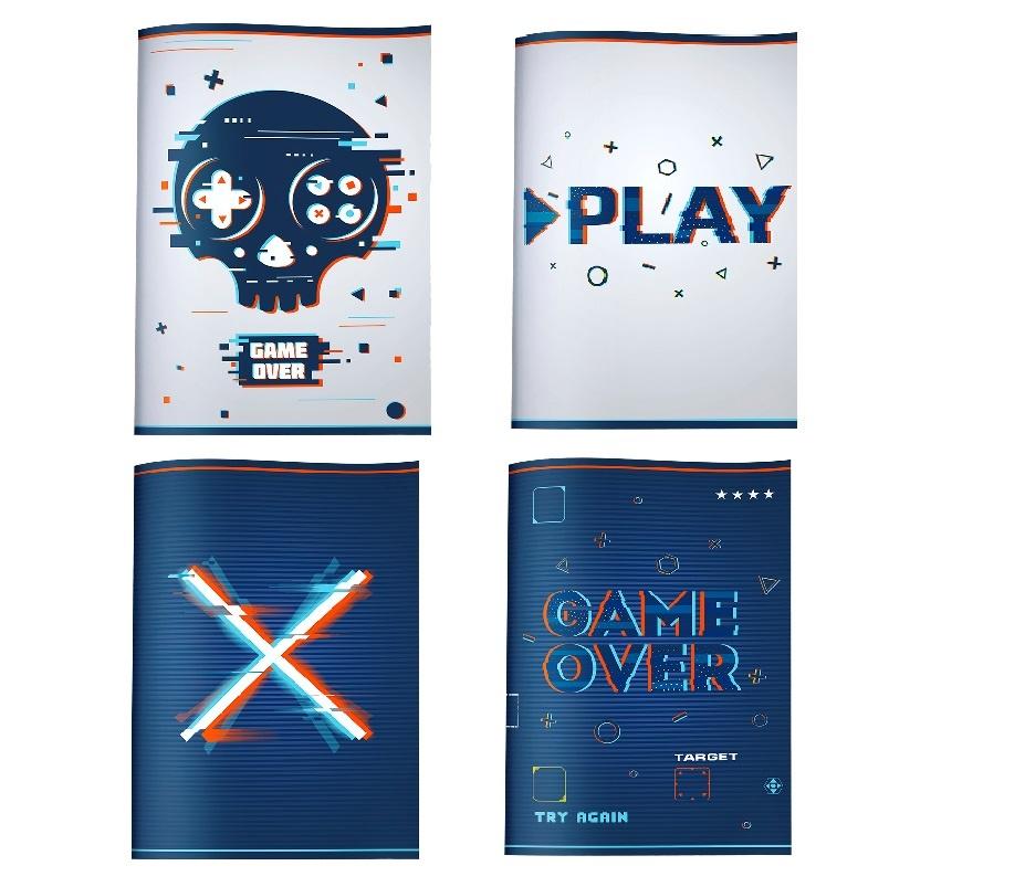 Zeszyt w formacie A5, 60 kartki w kratkę z serii Game Over. Opakowanie zbiorcze, mix wzorów w opakowaniu.
