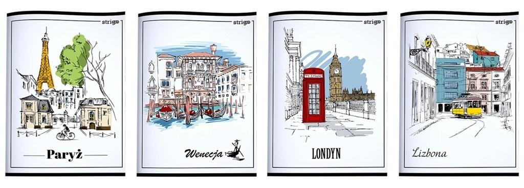 Opakowanie Zeszyt A5/60K kratka Miasta (10szt) STRIGO