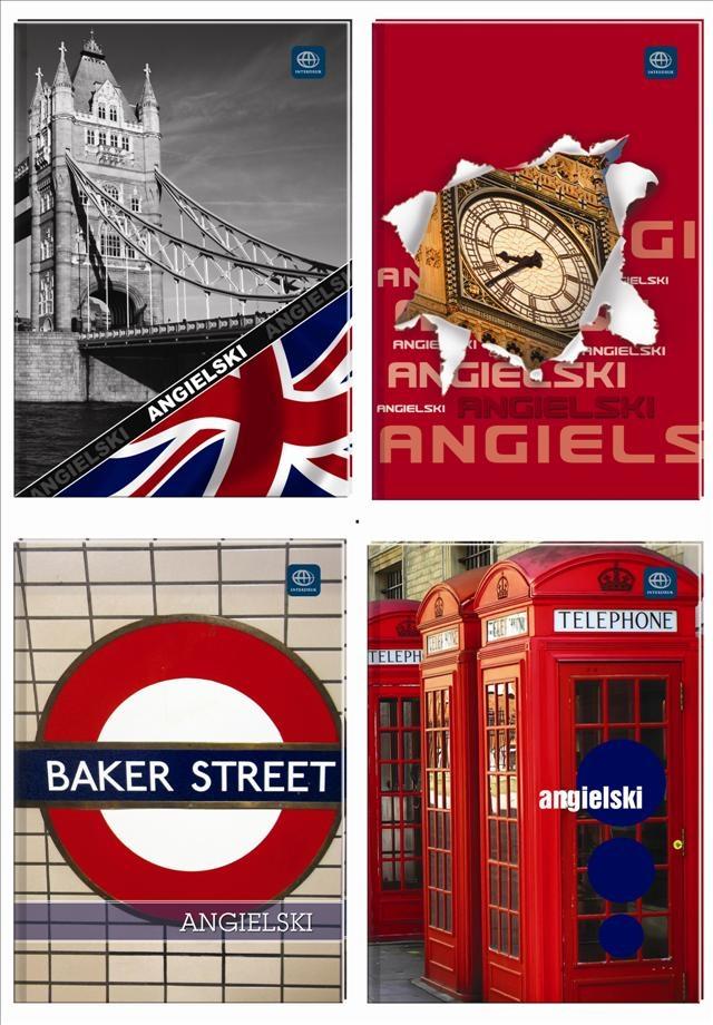 Zeszyt A5 kratka, 60 kartek, jezyk angielski, mix wzorów. 10 sztuk w opakowaniu zbiorczym.