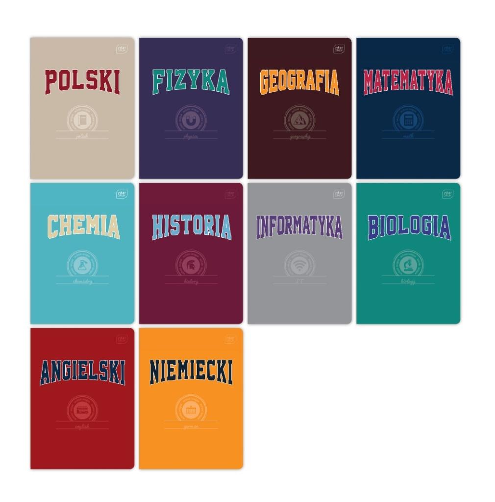W zestawie jest 10 przedmiotów: polski, fizyka, geografia, matematyka, chemia, historia, informatyka, biologia, angielski i niemiecki.
