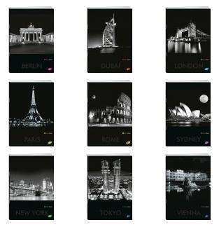 Zeszyty z kolekcji CITIES BY NIGHT charakteryzują się szlachetnymi, matowymi okładkami z nocnymi fotografiami miast.