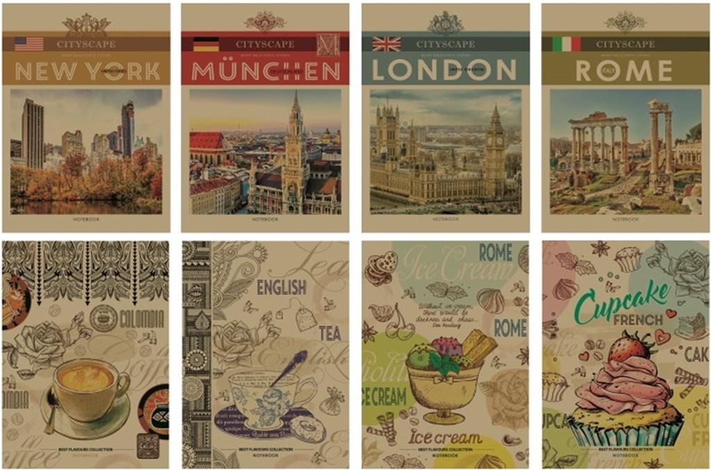 Zeszyt A5 32 stron kratka BR karton (opakowanie 16 sztuk). Opakowanie zawiera 8 wzorów po 2 sztuki ze wzoru.