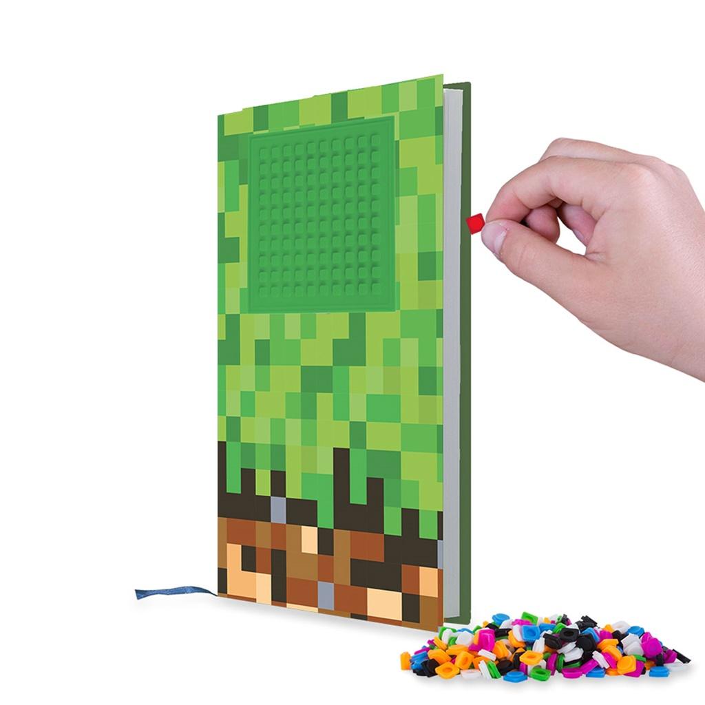 Praktyczny zeszyt PIXIE CREW, w rozmiarze A5, zawiera 80 kartek w linie (160 stron), na których możesz zapisywać swoje wspaniałe pomysły. Zeszyt ma okładkę z błyszczącego, twardego kartonu, z motywem zielonej kratki, nawiązującej do popularnej, znanej na całym świecie gry komputerowej. Na przedniej stronie znajduje się wyjątkowy, kreatywny, silikonowy panel PIXIE CREW TM, w kolorze zielonym, dający nieskrępowaną możliwość tworzenia oryginalnych własnych grafik i napisów. Panel wyposażony jest w niewielkie występy w kształcie litery ""T"", do których możemy mocować małe płytki - piksele oraz multipixele z obrazkami. Wielkość panelu: 10 x 10 punktów, pozwala na ułożenie wzorów ze 100 pikseli. Do każdego zeszytu dołączamy paczkę około 69 małych pikseli za darmo.