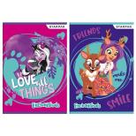Zeszyt A5, 16 kartek w linie, w miękkiej oprawie. Oprawka zdobiona grafikami z bohaterami Enchantimals. Zeszyt dostępny w dwóch wersjach graficznych.