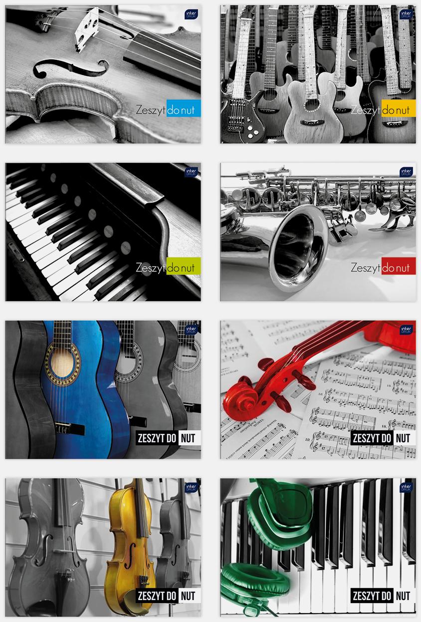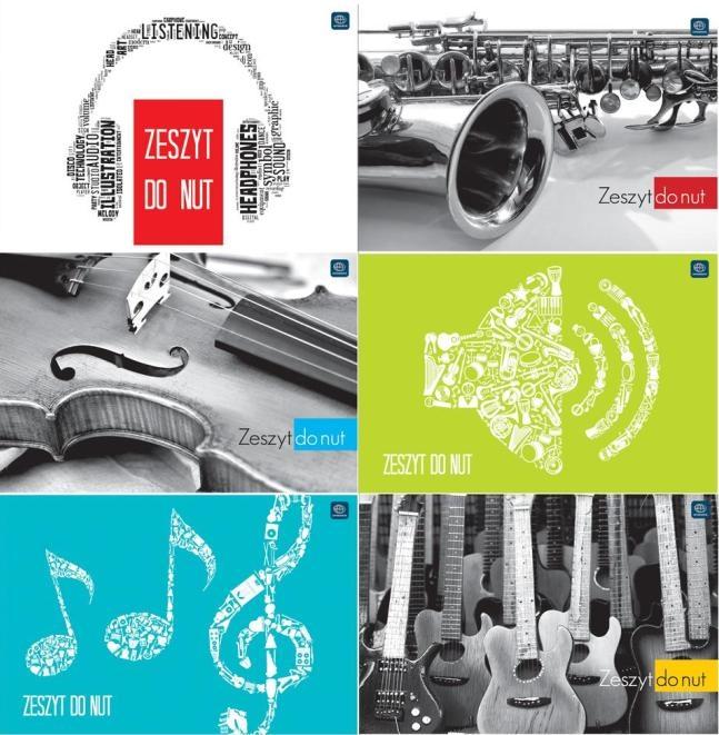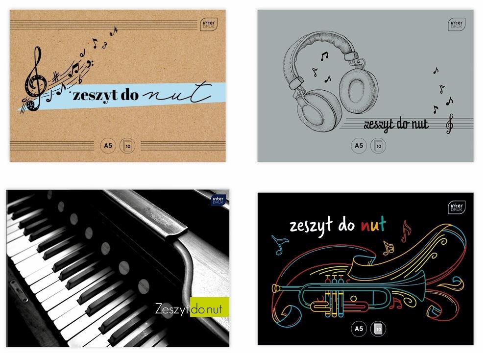 Zeszyt do nut A5, 16 kartek, mix wzorów. 10 sztuk w opakowaniu zbiorczym. Producent Interdruk.