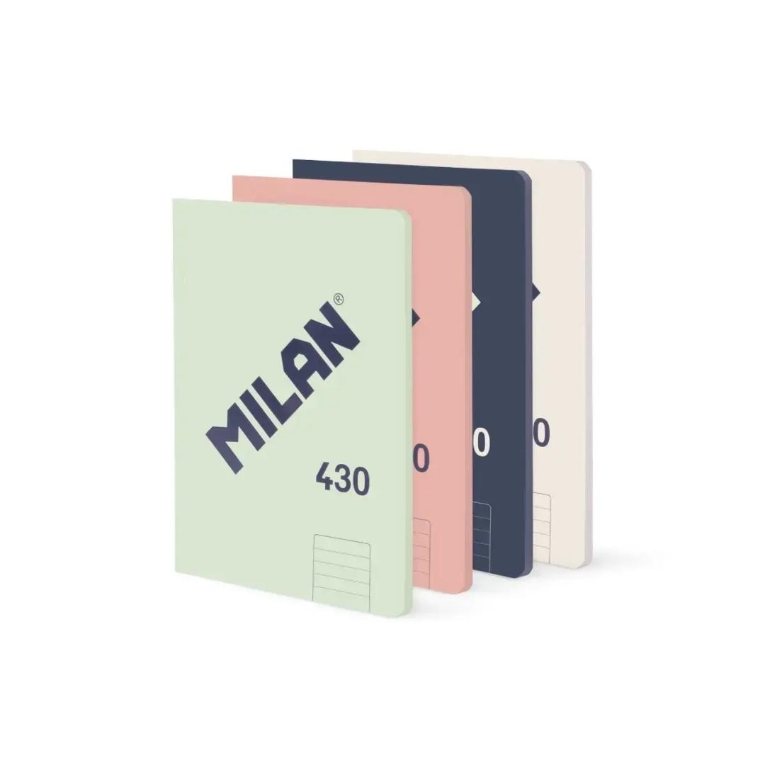 Zestaw 4 zeszytów notesów klejonych A5, papier w linie (7 mm), 48 kartek. Kolory: niebieski, beżowy, zielony i różowy. Elastyczna kartonowa okładka i błyszczące, wytłoczone logo MILAN. Wysokiej jakości papier o gramaturze 95 gr/m2, mikroperforowany. Kolekcja 1918 jest inspirowana oryginalnymi kolorami i wzornictwem gumek MILAN, produkowanych w Hiszpanii od 1918 roku. Wymiar: 21,4 x 17,6 x 2,8 cm 1 kg