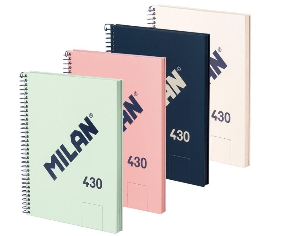 Zestaw zeszytów notesów z metalową spiralą z zamknięciem w systemie coil-lock zapobiegającym zaczepianiu się o odzież lub zarysowaniom mebli. Papier A5 gładki, 80 kartek. Mix kolorów: niebieski, beżowy, zielony, różowy. Sztywna kartonowa okładka i błyszczące wytłoczone logo MILAN. Wysokiej jakości papier o gramaturze 95 gr/m2, z mikroperforacją oraz z 4 otworami. Rozcięcie przy perforacji ułatwiające rozdzielenie każdego arkusza. Kolekcja 1918 jest inspirowana oryginalnymi kolorami i wzornictwem gumek MILAN, produkowanych w Hiszpanii od 1918 roku. Wymiar: 21,4 x 17,6 x 8 cm 1,56 kg.