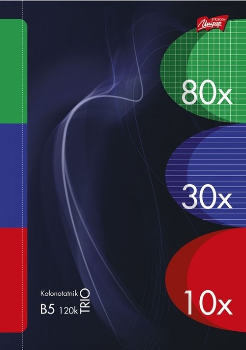 Zeszyt na spirali zawiera 120 kartek w kratkę z mikroperforacją. Miękka okładka wykorzystuje najnowsze motywy wzornicze UNIPAP. Dla podkreślenia wysokiej jakości wykonania i podniesienia trwałości okładka jest pokryta laminatem. Ilość kartek – 120 w podziale 80/30/10 Format – B5 Wkład zeszytu - papier offset Gramatura papieru – 60 g/m2 Okładka - laminowana Liniatura – krata/linia/gładki Cechy szczególne – kartki z mikroperforacją i dziurkami