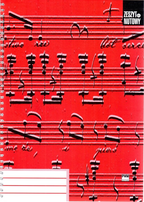 Zeszyt nutowy dla starszych uczniów; 12 pięciolinii na stronie. Zeszyt ma dużo stron; można je wyrywać. Wygodna forma kołonotatnika.