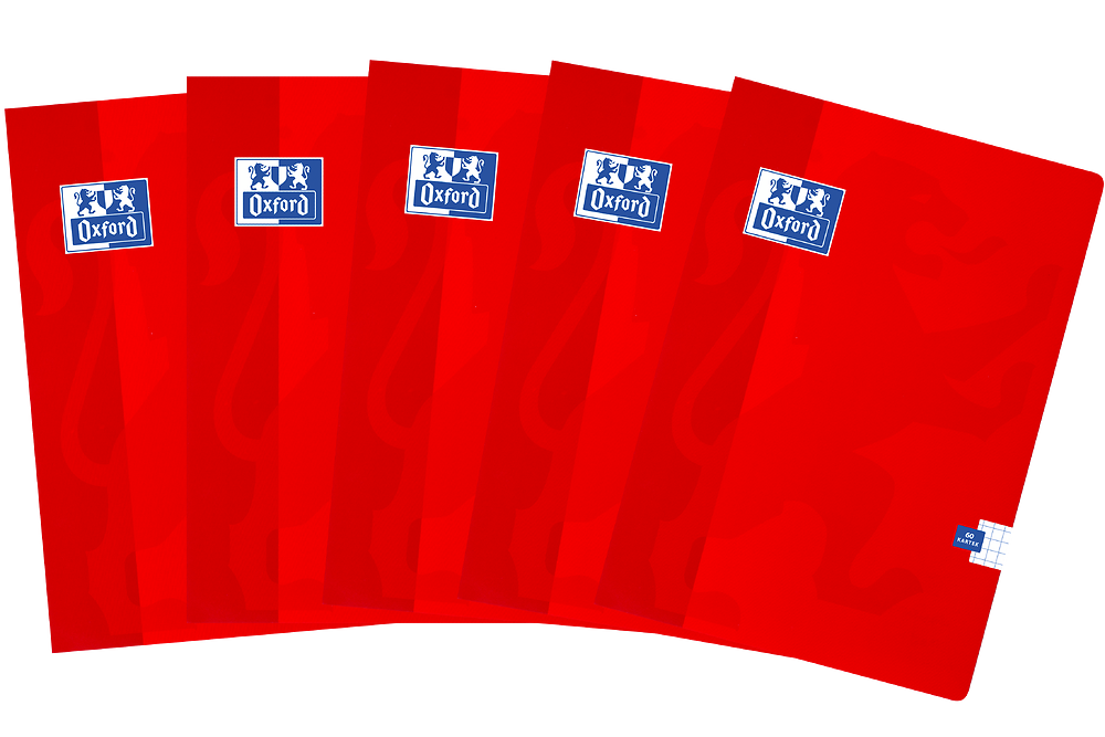 Opakowanie ZESZYT OXFORD ESSE A4 60K 90G KR MA CZERWONY kratka z marginesem PAKIET 5 SZTUK