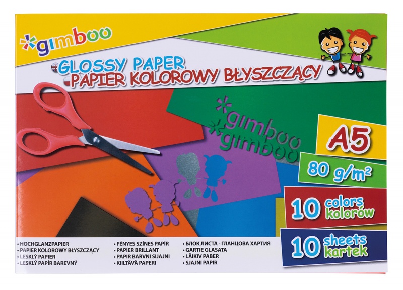 Opakowanie Zeszyt papierów kolorowych błyszczących A5 Gimboo 10 kolorów