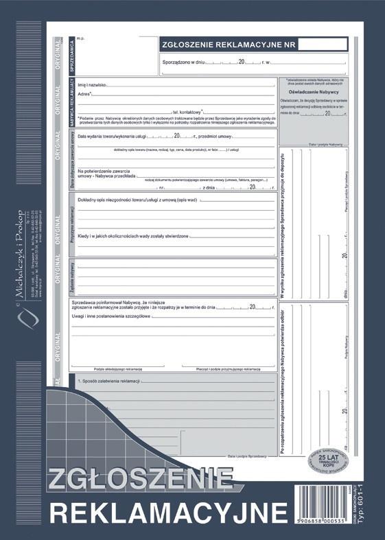 Opakowanie Zgłoszenie reklamacyjne 601-1