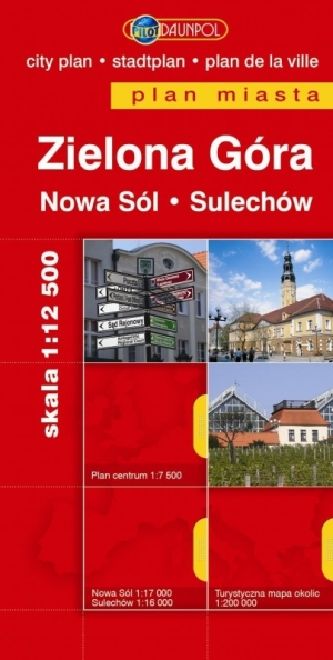 Plan miasta skala 1:12 500 GPS Dodatkowo zawiera plany miast: Nowa Sól, Sulechów plan centrum w skali 1:10 000, mapa okolic w skali 1:200 000