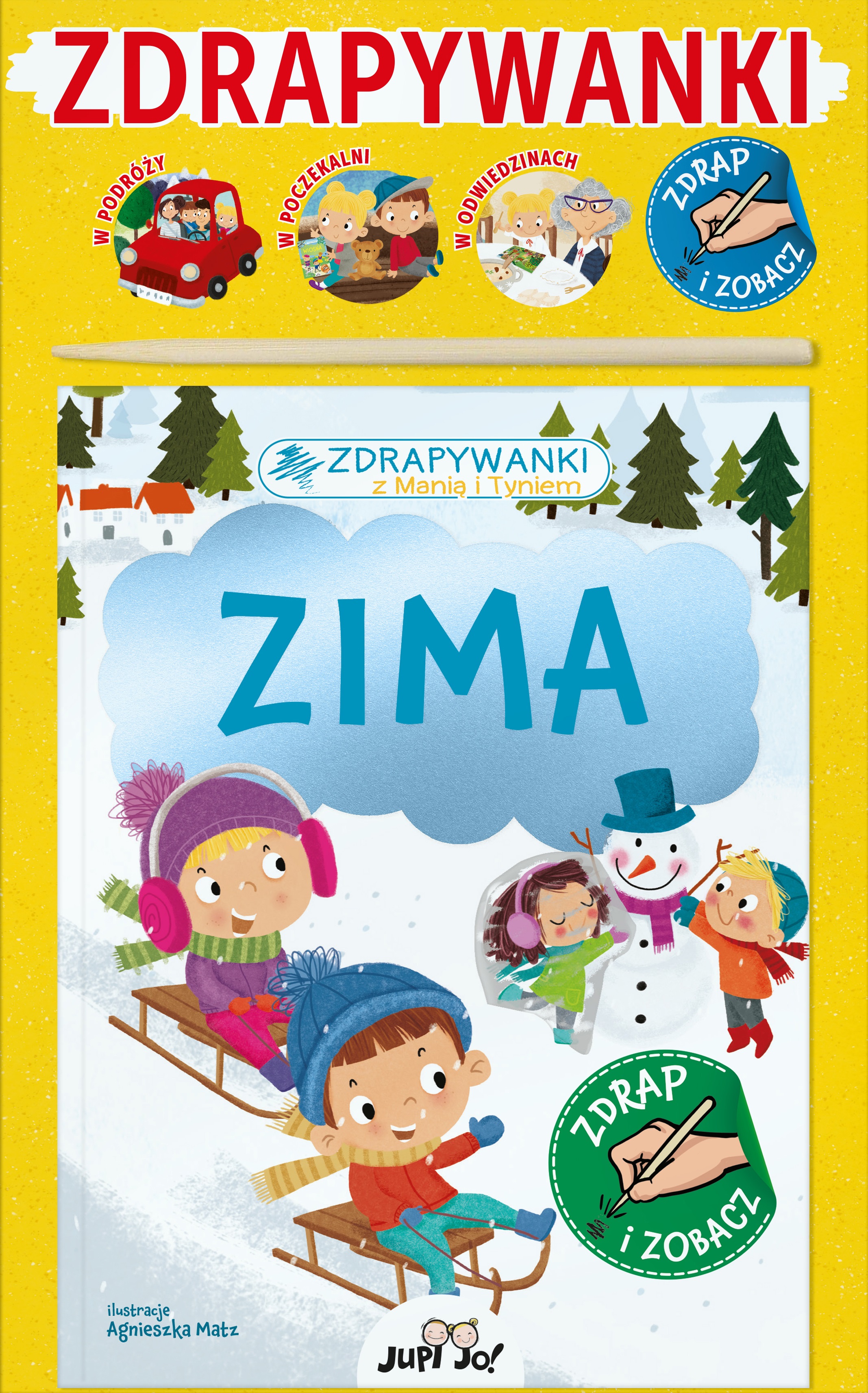 Zdrapywanki z Manią i Tyniem. Zima ma poręczny format i poprzez zabawę wspiera rozwój manualny najmłodszych. Używając patyczka, dzieci zdrapują srebrną farbę i odkrywają całą ilustrację. To doskonały trening koncentracji.